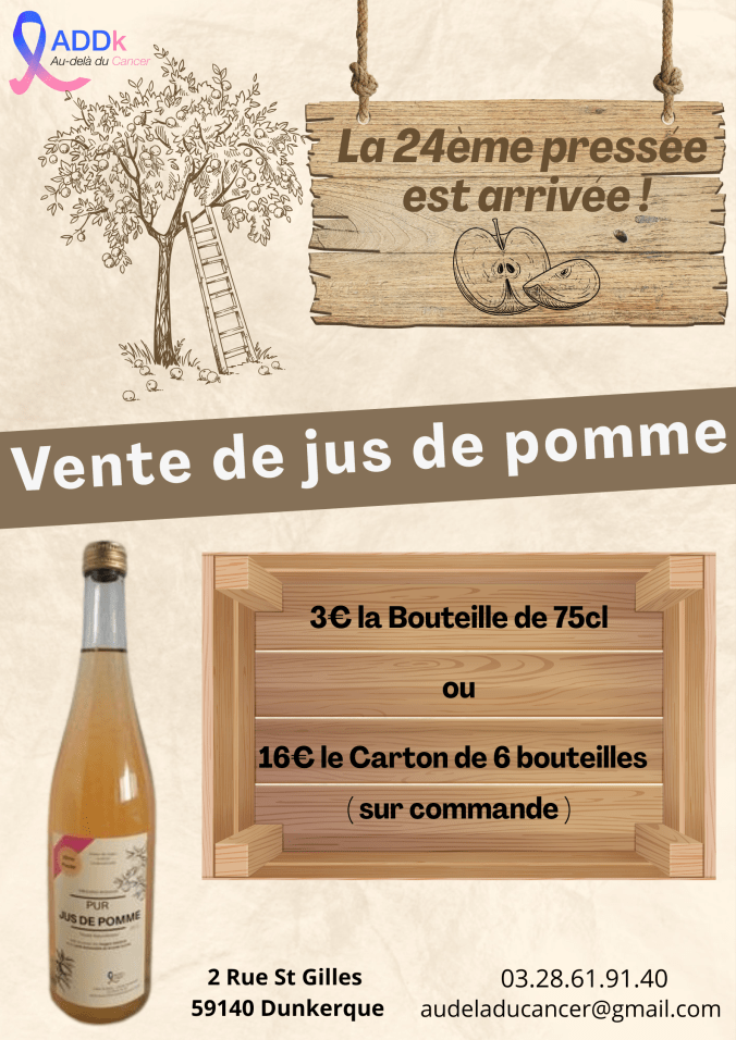 Film réalisé pour l’association « Au-delà du Cancer » . L’objectif de cette pressée de jus de pomme est de permettre un autofinancement de l’association. L’association a pour objectifs, de sensibiliser aux examens de dépistage, faire de la prévention, d’accompagner les malades et leur entourage, ainsi que de réaliser des rêves ou défis sportifs.