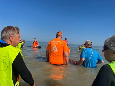 Ici, pas besoin d’être champion olympique ni dauphin professionnel — on enfile sa combinaison, on s’immerge jusqu’à la taille, et c’est parti pour une marche en mer, entre éclats de rire et bienveillance.