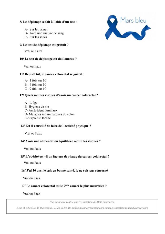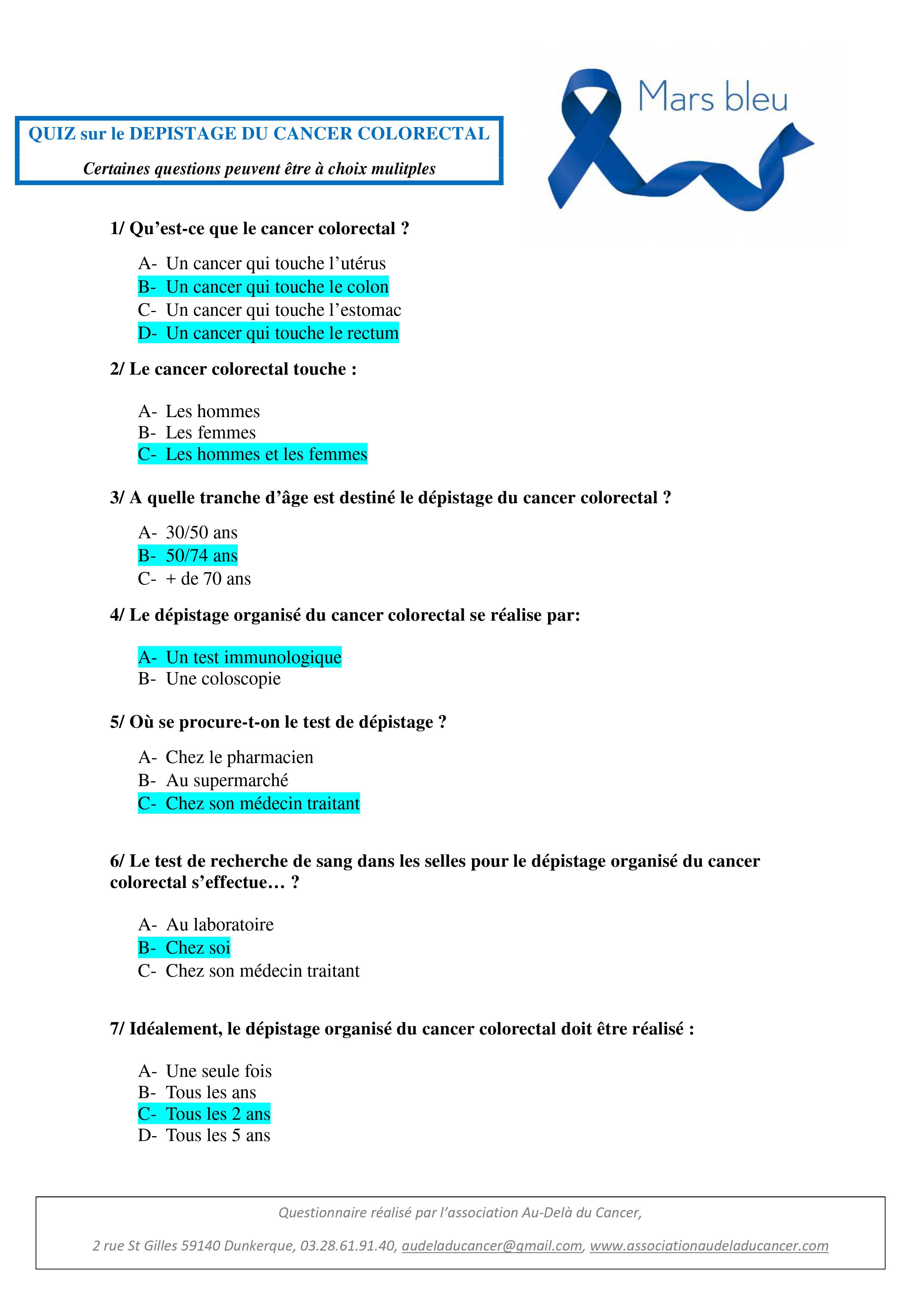 QUIZZ sur le DEPISTAGE DU CANCER COLORECTAL